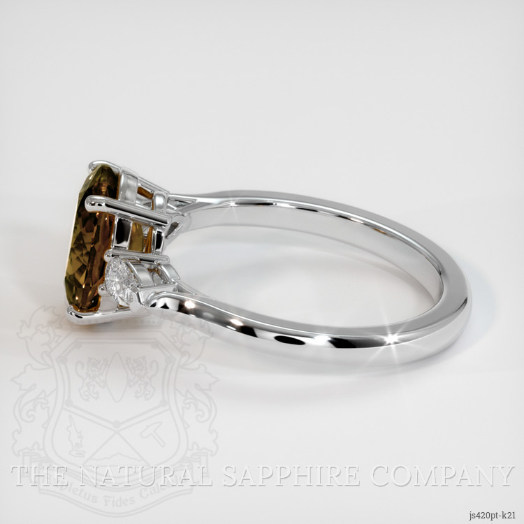 The ring features a beautiful, transparent 2.82 carat oval shape yellowish brown zircon with the dimensions of 9.50 x 7.26 x 4.23 mm and a mixed brilliant cut. It has a clarity grade of very slightly included (evaluated at eye level), intense color saturation, and an excellent polish. The origin of this zircon is Ceylon (Sri Lanka).