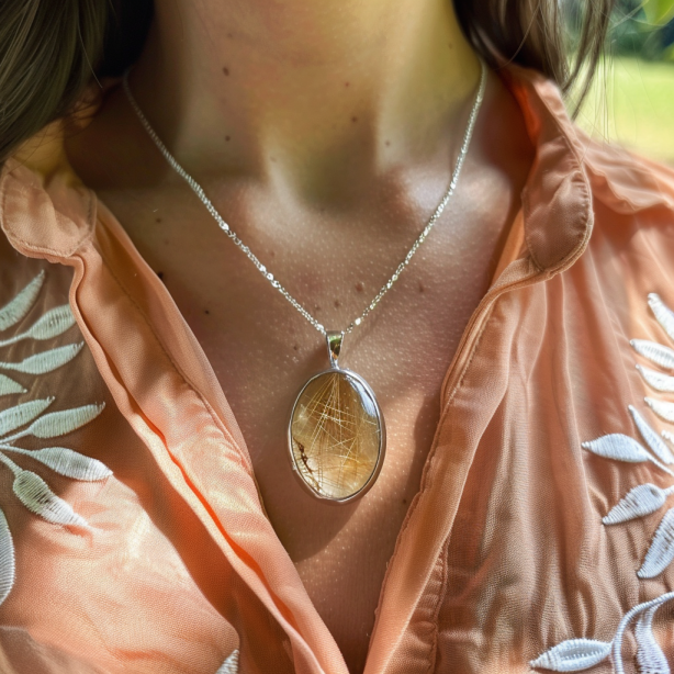 Rutilated quartz is often called the “illuminator” for its ability to bring positivity and creativity to its wearer. Many believe that the stone encourages clarity of thought and helps overcome feelings of doubt or fear. This makes it a popular choice for artists, writers, and those seeking inspiration.