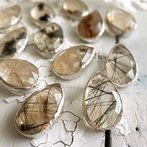 With a Mohs hardness of 6 to 7, rutilated quartz is durable enough for everyday wear yet versatile for various jewelry applications. Its unique patterns allow it to fit seamlessly into both contemporary and vintage-inspired designs.