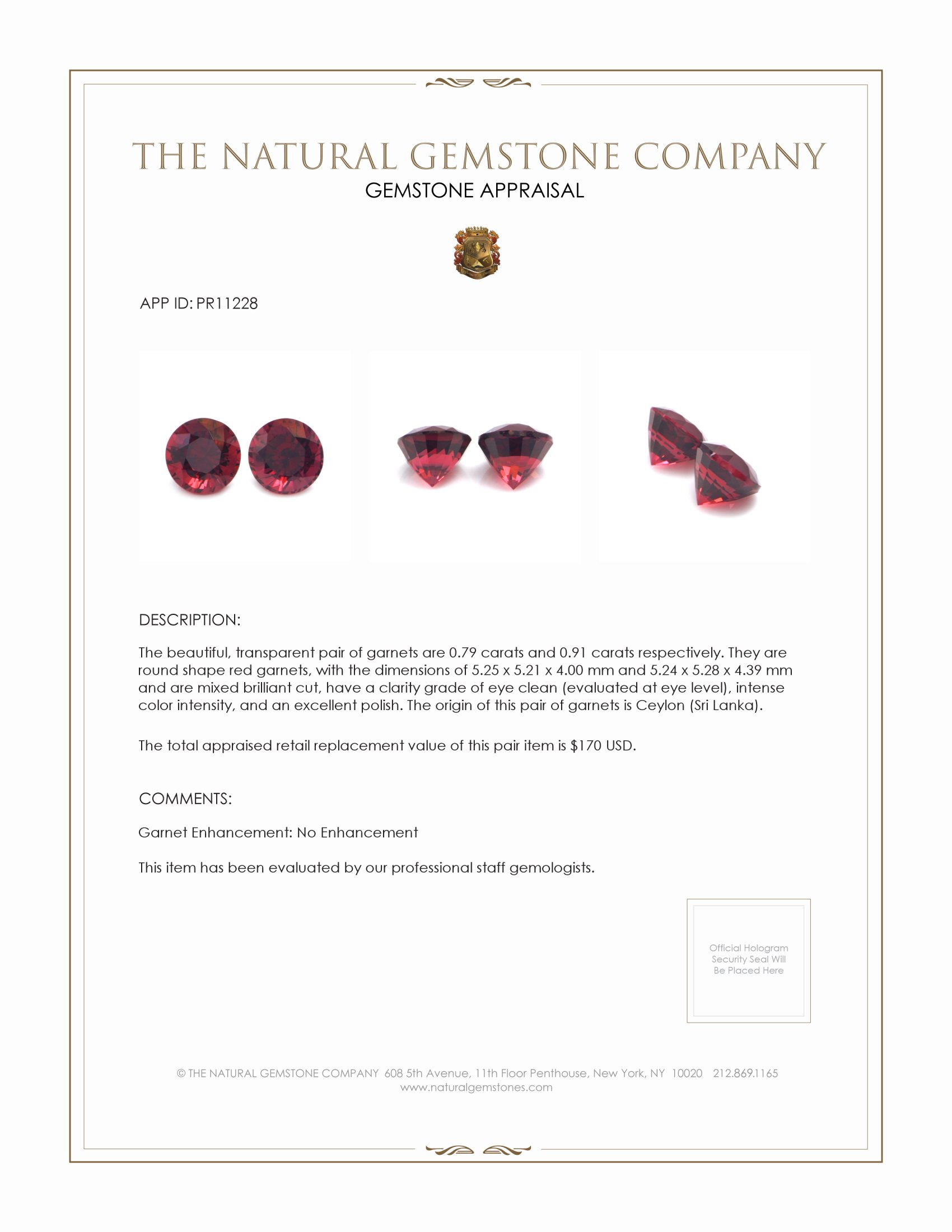 1.70 Ct.Tw.Total Carat Weight Garnet Pair from Ceylon (Sri Lanka)