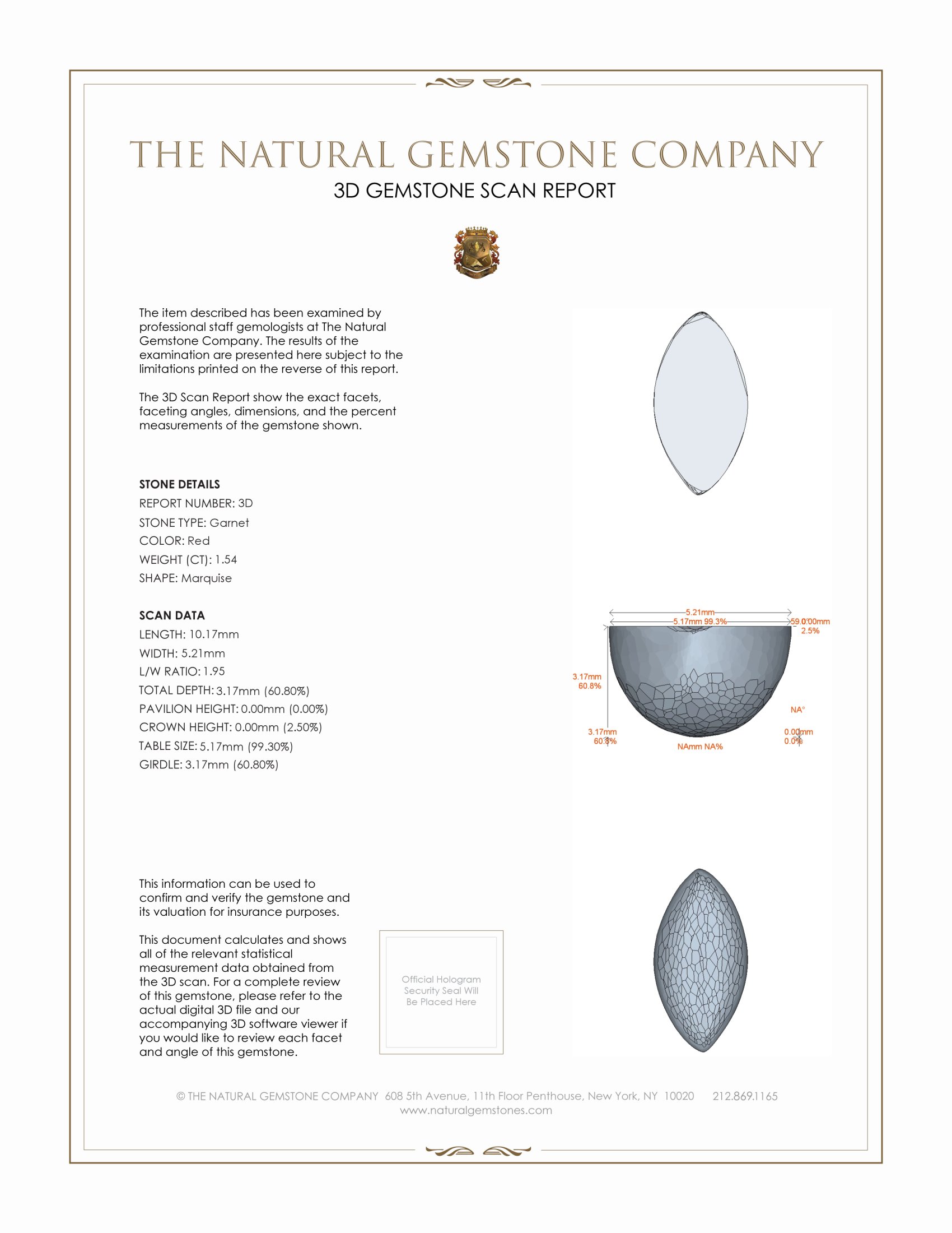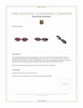 From a practical design and setting perspective these garnets offer flexibility for a range of earring styles, from refined studs to bezel set drops and articulated compositions where consistent movement is required. The marquise proportions accommodate vertical or horizontal orientation, enabling designers to prioritize elongation or stability according to the intended aesthetic, and the identical dimensions reduce the need for compensatory metalwork to achieve visual parity. The excellent polish will minimize metal footprint while maintaining light return at the dome edge, and the lack of enhancement simplifies disclosure and supports longevity of color and appearance over time. For craftsmen and consumers seeking a natural pair with verifiable origin and controlled attributes, The Natural Gemstone Company documents the Sri Lankan origin and the unenhanced status of these garnets. When selected for earrings, the paired garnets combine matched mass, matched shape, matched surface quality, and matched color intensity, providing an assured foundation for pieces that require coherent brilliance and enduring visual symmetry.