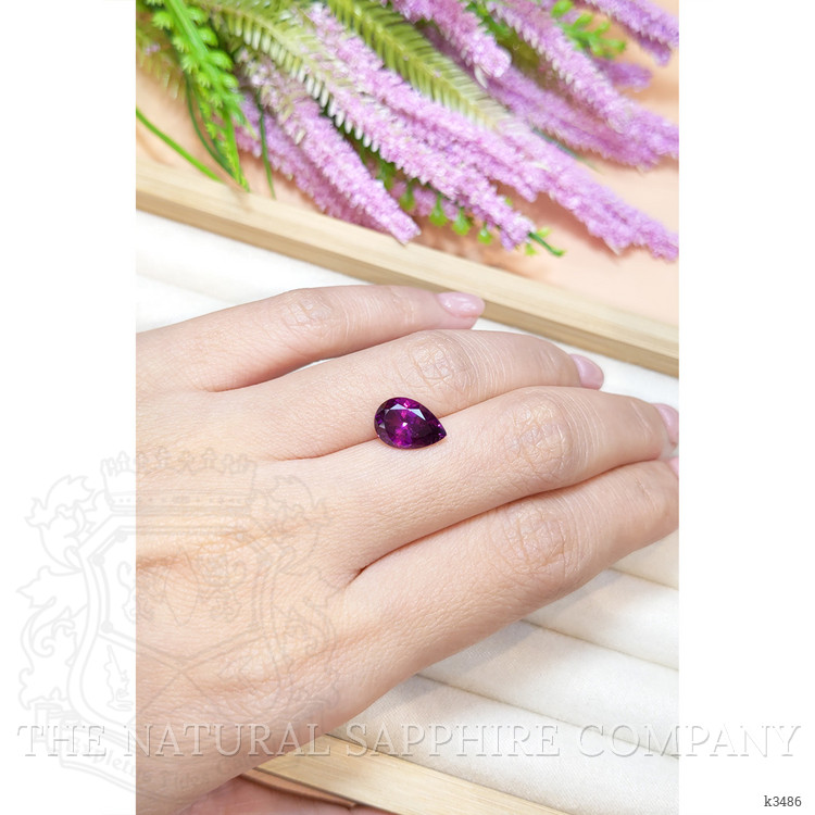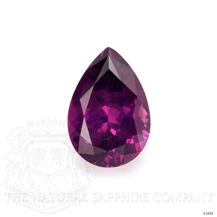 Introducing a truly exceptional gem from The Natural Gemstone Company, a stunning 3.23 carat pear-shaped purple garnet that exudes elegance and sophistication. This rare garnet, with its impressive dimensions of 11.26 x 7.73 x 5.11 mm, is crafted with a mixed brilliant cut that enhances its natural beauty and sparkle. The mesmerizing allure of its purple hue, complemented by an intense color intensity and an excellent polish, makes it an exquisite choice for those with a discerning eye for beauty and quality. This garnet's clarity grade, very slightly included when evaluated at eye level, ensures that any inclusions are minimal and nearly invisible to the naked eye, allowing its rich color and captivating brilliance to take center stage.