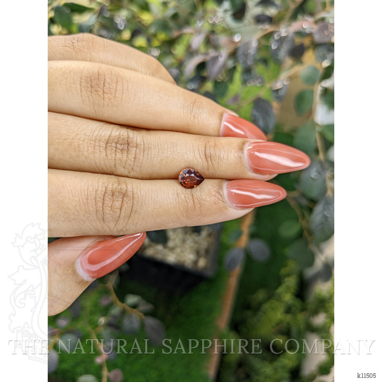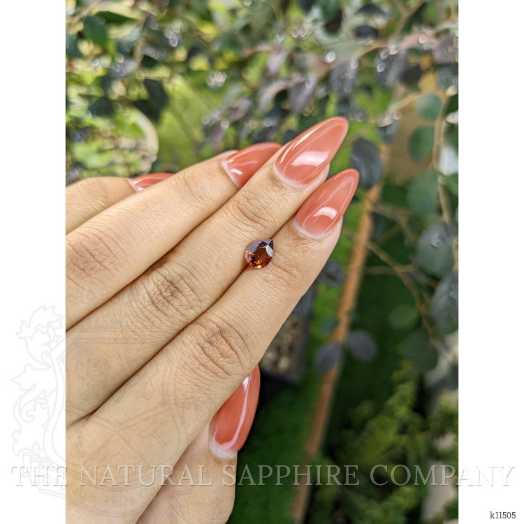 The result is a pear-shaped garnet that dazzles with its vibrant intensity and exceptional clarity. Each facet, cut with a precise angular formation, unlocks a world of scintillation within the stone. It possesses a mixed brilliant cut, allowing an interplay of light and shadow that bewitches the beholder, enthralling with every tilt. This choreography of light is heightened by the medium color intensity, bringing forth a rich, warm orange hue that seems to pulsate with life, reflecting the very essence of the sunlit landscapes from which it originated.