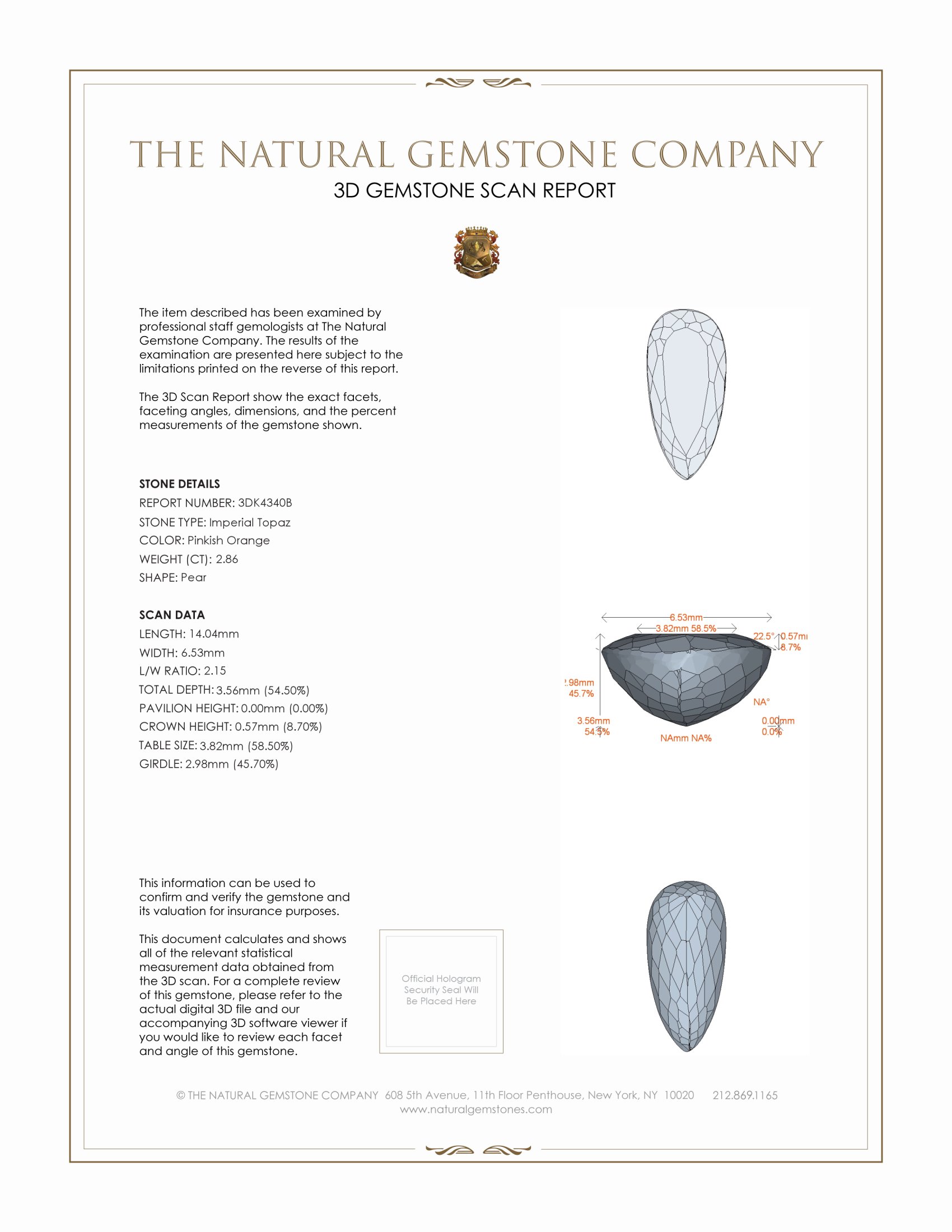 Introducing a truly remarkable gem from The Natural Gemstone Company, a 2.86 carat pear-shaped pinkish-orange imperial topaz that stands out in elegance and quality. This exquisite gemstone, sourced responsibly from Brazil, combines the allure of natural beauty with exceptional craftsmanship. Unlike many gemstones on the market, this imperial topaz boasts a unique medium intense color intensity that captures attention with its vivid hues reminiscent of a stunning sunset. The absence of enhancements ensures its natural luster and purity, providing a level of authenticity coveted by gemstone enthusiasts and collectors alike.