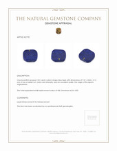 Introducing an exceptional specimen from The Natural Gemstone Company. This captivating opaque blue lapis weighs in at 2.02 carats, offering a remarkable blend of size and vibrant color that sets it apart in the realm of fine gemstones. This piece is expertly crafted into a cushion shape with precise dimensions of 9.01 x 8.84 x 2.14 mm, making it an ideal candidate for custom jewelry designs. Its tablet cut enhances the stone's natural beauty and vivid color intensity, ensuring that it becomes a striking focal point in any piece of jewelry. This exquisite blue lapis not only captures attention with its aesthetic appeal but also carries a heritage of authenticity, having been sourced directly from Afghanistan, a region renowned for producing lapis of the finest quality.
