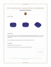 The majestic lapis lazuli has long been cherished for its captivating color and storied history. This exceptional 3.26 carat purplish blue gemstone draws from the depths of Afghanistan's ancient mines, a region renowned for producing some of the finest specimens since antiquity. Its rich hue evokes the timeless beauty admired by the nobility and artisans of ancient civilizations, including the Egyptians and Mesopotamians. Throughout history, this magnificent stone has been valued not only for its aesthetic allure but also for its symbolic significance, making it a staple in royal regalia and artistic endeavors. The Natural Gemstone Company proudly offers this exquisite lapis lazuli, skillfully crafted into a cushion shape with dimensions of 12.17 x 10.20 x 2.39 mm. Its tablet cut, renowned for its ability to reveal the stone's vivid color intensity, highlights the gemstone's inherent opulence.