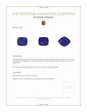 Unlike the common gemstones that catch the eye with their stark brilliance and precise sparkle, this opaque beauty exudes a subtle allure. Its cushion shape, measuring a generous 12.87 by 12.80 millimeters, is a testament to the natural elegance found only in nature's finest creations. The lapis lazuli, measuring 2.24 millimeters in depth, is a wellspring of emotional resonance, opening doors to dreams and age-old emotions. Its deep tablet cut and excellent polish reveal a bygone artistry, where every facet is kissed by the gentle hands of time, reflecting the luminous sapphire tones that captivate the soul.