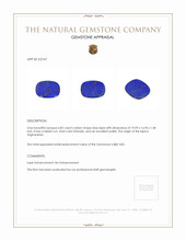 Owning a piece of this caliber from The Natural Gemstone Company is not merely an acquisition but a personal triumph, a reflection of one’s discerning taste that signals a lifetime of achievements and aspirations. As luminous as it is rare, this 6.85 carat blue lapis beckons the true connoisseur in you, inviting you to celebrate not just its presence in your collection, but the stature it undeniably bestows upon you. Each glance at this magnificent jewel ensures a timeless journey through the realms of resplendence and prestige.