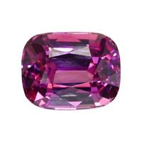 The Natural Gemstone Company presents a transparent pink Malaya garnet, 3.14 carats, cushion shape, measuring 8.69 by 6.88 by 5.70 millimeters, with a mixed brilliant cut. This gem displays intense color saturation, an excellent polish, and a clarity grade described as very slightly included evaluated at eye level. The stone is from Madagascar and has no enhancement. The mixed brilliant facet arrangement maximizes light return while maintaining the soft pillow outline associated with the cushion shape, producing a balanced interplay of fire and scintillation across the pavilion and crown. At 3.14 carats the proportions are well suited for a range of settings, from a refined solitaire to a sophisticated cluster, and the transparency allows for consistent color transmission under varied lighting conditions. The excellent polish contributes to crisp facet junctions and a lively surface finish, and the modest natural inclusions are consistent with a gem of this type and size, offering character without detracting from overall visual appeal.