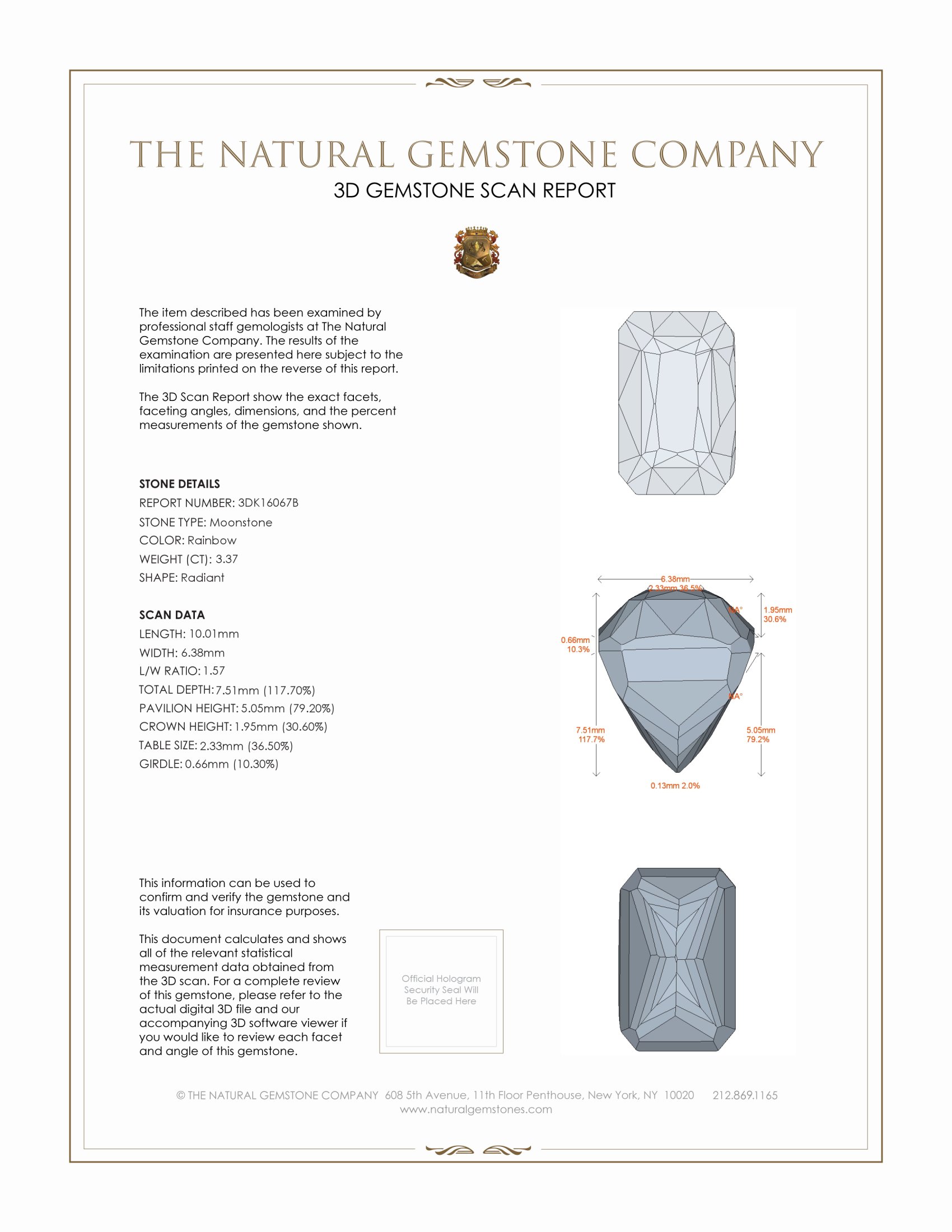 Imagine a moment where dreams converge with reality, captured in a scintillating gem poised to transform any occasion into an unforgettable experience. At The Natural Gemstone Company, we present to you our exquisite 3.37 carat radiant-shaped rainbow moonstone, designed not just to adorn, but to inspire profound emotional connections. This semi-transparent wonder holds an ethereal beauty that transcends time, offering a gentle embrace of shimmering light that surpasses the ordinary while igniting a spark of intrigue and desire within the hearts of those who behold it.