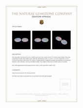 The Natural Gemstone Company is pleased to introduce a stunning set of oval-shaped white opals that are an exemplar of nature's artistry. These opulent gemstones, with carat weights of 0.66 and 0.73 respectively, capture a vivid spectrum of colors in their translucent depths, captivating the eye and soul in equal measure. Opals are renowned for their unique interplay of light, and these specimens from Australia are no exception. With intense color intensity and an excellent polish, they serve as a testament to the meticulous craftsmanship that our company upholds.