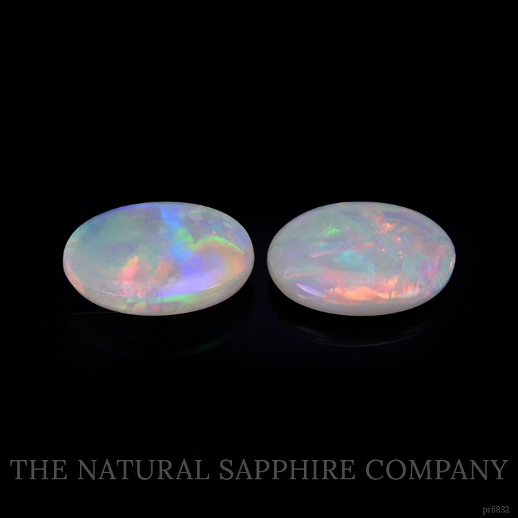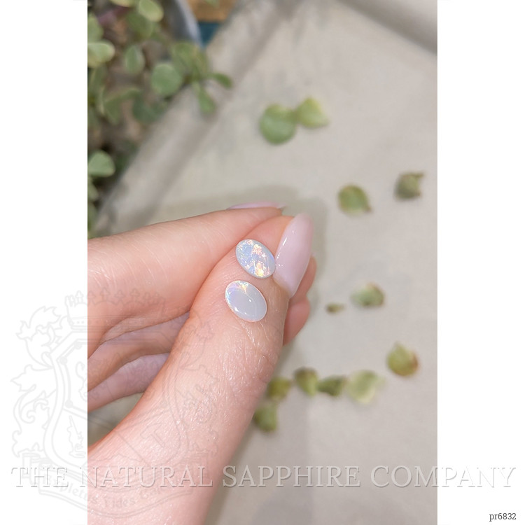 These cabochon-cut opals, measuring 8.12 x 6.03 x 2.14 mm and 8.25 x 6.16 x 2.28 mm, exhibit slight inclusions evaluated at eye level. This clarity grade only enhances their allure, as each imperfection is a hallmark of the earth from which they originated and adds character to the gemstones. Unlike many opals on the market that have undergone enhancement processes to amplify their color, this pair is entirely natural. Their genuine hue and luster enhance their value significantly, especially to those who appreciate the authenticity of untouched gems.