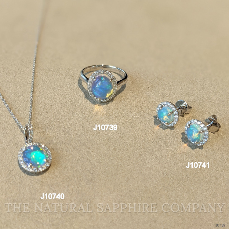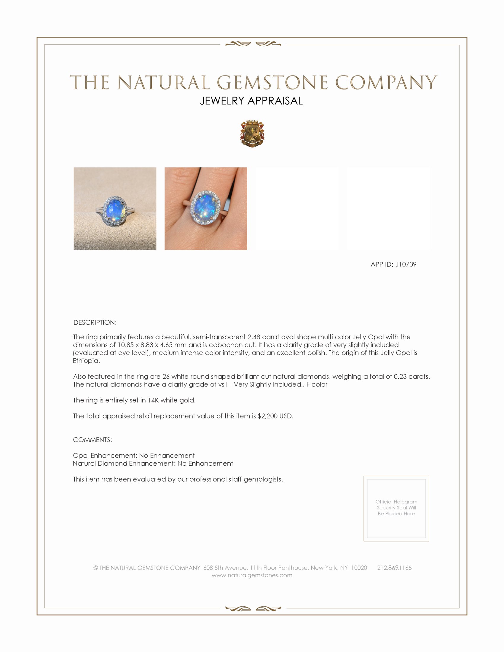 2.48 Ct. Opal Natural Diamond Halo Ring, 14K White Gold