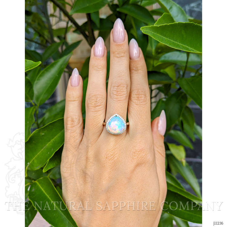 In the depths of the earth, where fiery depths cradle dreams in silence, the opal begins its mysterious journey. Formed over millennia in the rich soils of Australia, this opal absorbs the essence of its fiery origins. The stone marvelously captures the shifting colors of the landscape, painting the hues of dawn and dusk within its depths. Each opal’s unique play of color is the result of light dancing across its tightly packed silica layers, offering a unique picture written by nature itself. It is this opal’s extraordinary journey from a humble rock to a gemstone that breathes magic into every angle of this ring gaze.