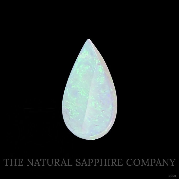 The featured product is an exquisite translucent opal, weighing 0.96 carats and fashioned into an elegant pear shape. This opal, sourced from the renowned geological landscapes of Australia, belongs to the category known as White Opal, highly prized for its unique play-of-color characteristic. With dimensions measuring 12.04 x 7.75 x 1.93 mm, it is expertly cut into a tablet form, which enhances its allure through a broad display of colors across its surface.