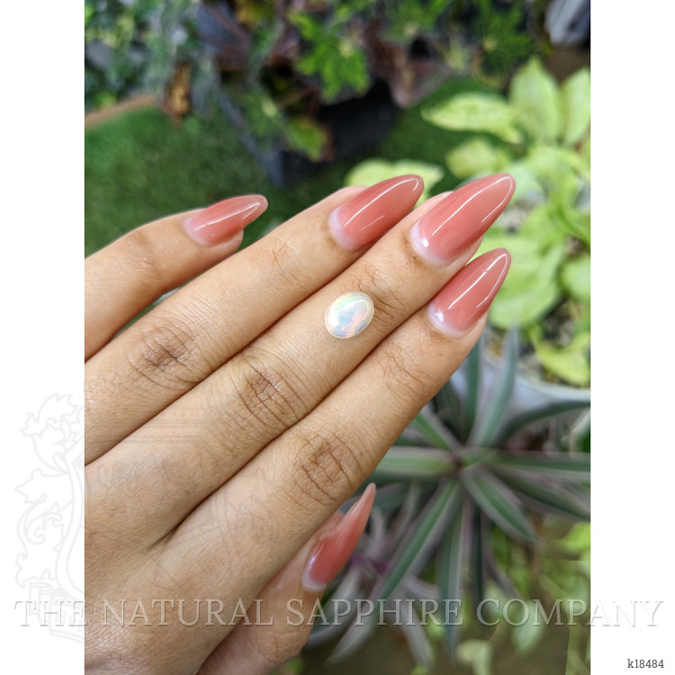 Imagine slipping a whisper of Australian light into your hand, a White Opal that seems to hold a sunrise and a secret at once, a 0.97 carat oval shape multi color opal that invites you to pause and smile. This opaque gem measures 8.96 x 7.11 x 3.25 mm and is meticulously shaped in a smooth cabochon cut to showcase its soft, dancing color. Evaluated at eye level as eye clean, it carries a medium intense color intensity that reveals delicate flashes of red, green and blue as it moves, and an excellent polish that gives it a luminous finish. There is no enhancement, so what you see is the pure, natural beauty born in Australian soil and carefully selected for its unique play of color, offered to you by The Natural Gemstone Company.