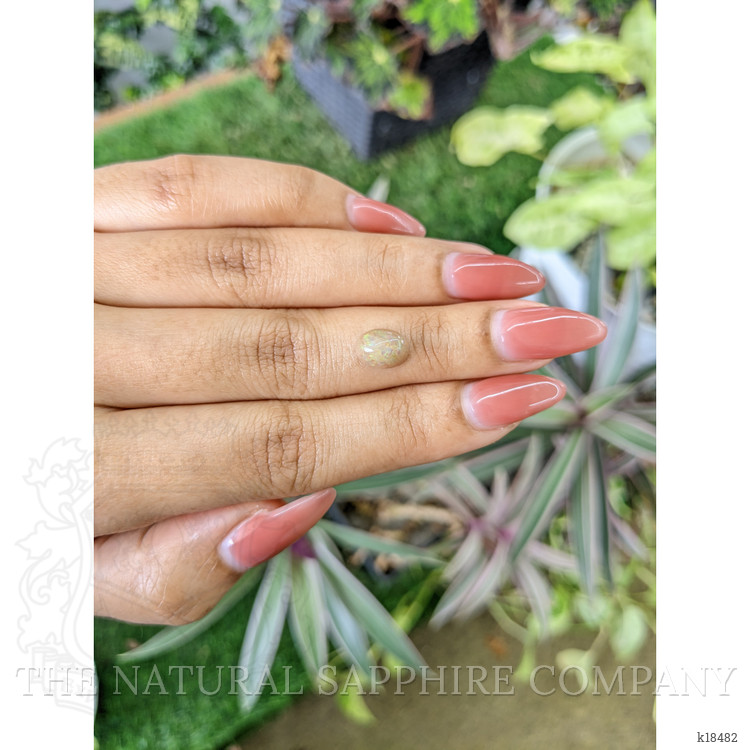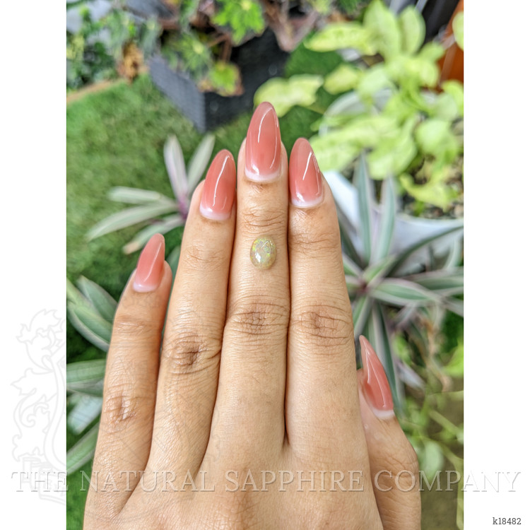 This listing presents a single, beautiful White Opal, a natural Australian specimen weighing 1.16 carat, with an oval shape and cabochon cut, measuring 9.00 x 6.87 x 4.22 mm. The gem is opaque by body tone, displaying a pleasing multi color play that reveals flashes of green, orange, and subtle red when viewed from different angles. The clarity grade is eye clean, evaluated at eye level, which means no inclusions or detracting features are visible to the unaided eye, while the polish is rated excellent, providing a smooth surface that enhances the opal s inherent shimmer. Importantly, this opal has no enhancement, it is a solid natural gem from Australia, and it is offered with the provenance and careful documentation you expect from The Natural Gemstone Company.