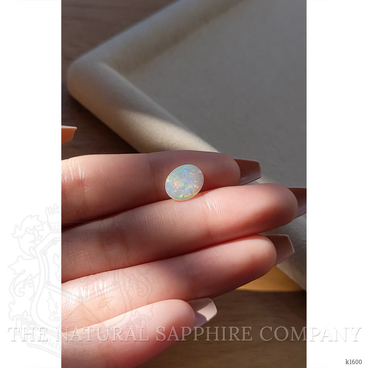 The exquisite opal we are pleased to present is a remarkable example of the beauty that nature has to offer, fashioned into an elegant gemstone ready to become part of bespoke jewelry creations. This 1.40 carat oval-shaped opal, with its dimensions measured precisely at 11.23 x 9.17 x 2.10 mm, stands out with its unique tablet cut and enticing play of multiple colors. Known as a White Opal, this gemstone radiates a medium intense color intensity, which reflects the vibrant energy and allure of its Australian origin, a region renowned for producing some of the world’s most captivating opals.