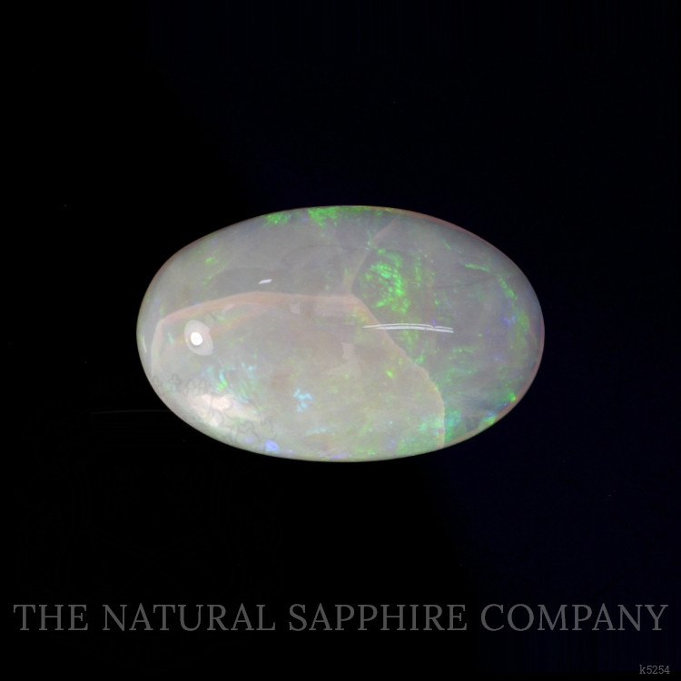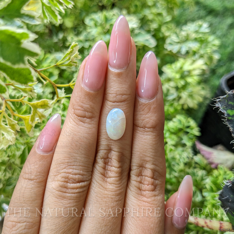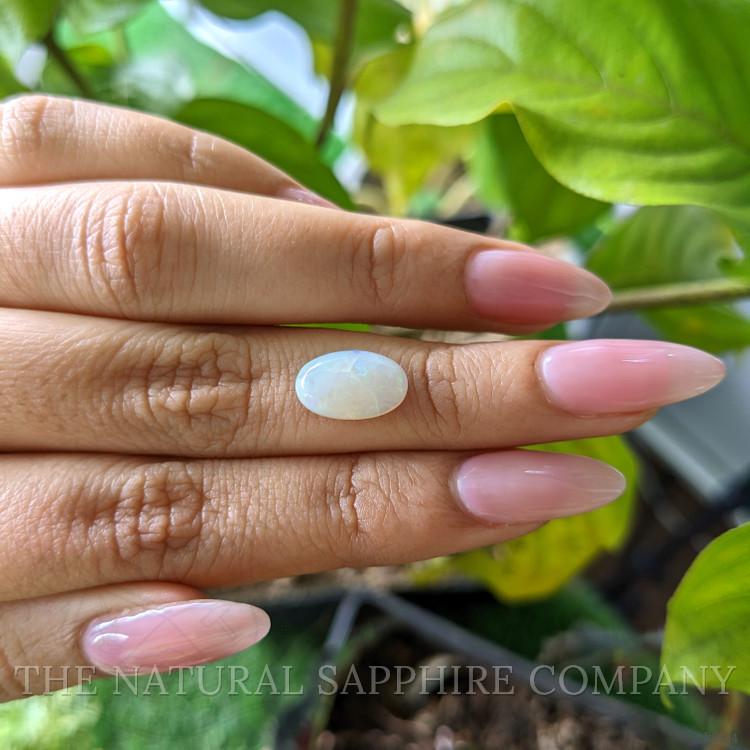 The opal has been expertly shaped into a cabochon cut, a particularly popular choice that underscores the gem's natural beauty and kaleidoscopic colors. The domed surface and smooth edges of the cabochon cut not only provide a polished finish but also enhance the play of color, a hallmark of opals that captures an array of hues in changing light. Rated with a clarity grade of very slightly included, this opal offers an impressive visual experience. At an eye level, these inclusions are scarcely noticeable, further testament to the meticulous evaluation process The Natural Gemstone Company employs to deliver only the finest specimens.