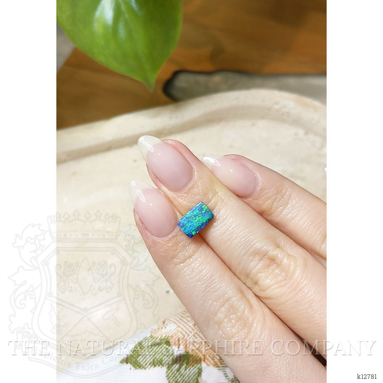 Our 1.81-carat cushion-shaped Boulder Opal, with dimensions of 9.66 x 6.11 x 3.10 mm, has been expertly crafted to celebrate its innate beauty. The tablet cut of this opal is a marvel of geometric faceting, designed meticulously to allow for the maximum play of light. As light dances upon its surface, it reveals a mesmerizing array of hues, a symphony of intense colors blending seamlessly together, creating an ever-changing landscape of brilliance. The opal's opaque nature doesn’t dull its glory; rather, it adds depth and mystique to its already remarkable presence, making it a conversation piece that beckons to be admired.