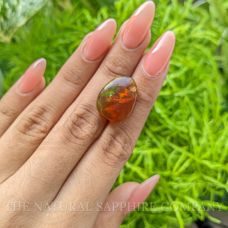 Within the timeless embrace of romance and enchantment, The Natural Gemstone Company proudly presents a masterpiece from the heart of Ethiopia, our exquisite 15.38 carat pear-shaped multi-color opal, a shimmering treasure of dreams and desires. This jewel, born of ancient volcanoes and cradled in the nurturing embrace of time, tells tales of starlit skies, hidden lagoons, and moonlit embraces with its breathtaking kaleidoscope of colors. Its cabochon cut and slightly included clarity bestow upon it the character of an enigmatic storyteller, whispering secrets of elegance and charm with each glint of light that dances across its polished surface.