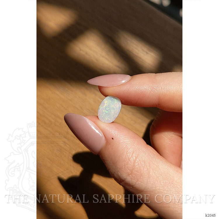 Crafted by the whispers of millennia, each facet of this gemstone tells a story as old as the ancient lands it calls home. Elements of forest mist meet ocean's embrace within this oval-shaped treasure, making every angle a new revelation. The clarity, though very slightly included, speaks to the opal's authenticity and organic charm, reminding us that love, too, thrives in its imperfections. This gem’s brilliance is immortalized in its exquisite polish, allowing light to glide across it in a perpetual dance that enchants the senses.