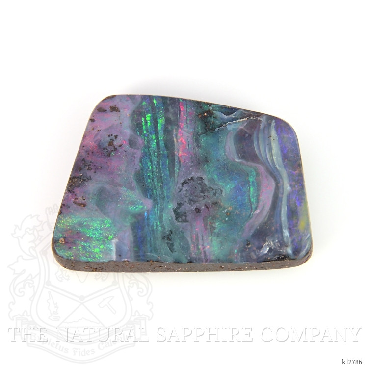 Introducing an exemplary piece from The Natural Gemstone Company, this captivating 26.81 carat multi color opal presents itself with unparalleled allure through its freeform shape, truly captivating the seasoned eye of gemstone aficionados. With dimensions of 26.30 x 18.50 x 5.10 mm, it not only boasts a significant presence, but also reveals its story with a spectrum of play-of-color that has historically mesmerized cultures around the world. The Boulder Opal from which it originates stands out due to its impeccable clarity and entrancing palette embodying both earthy and celestial tones, drawing similarities to the famed Fire of Australia and the Andamooka Opal necklace worn by Queen Elizabeth II.