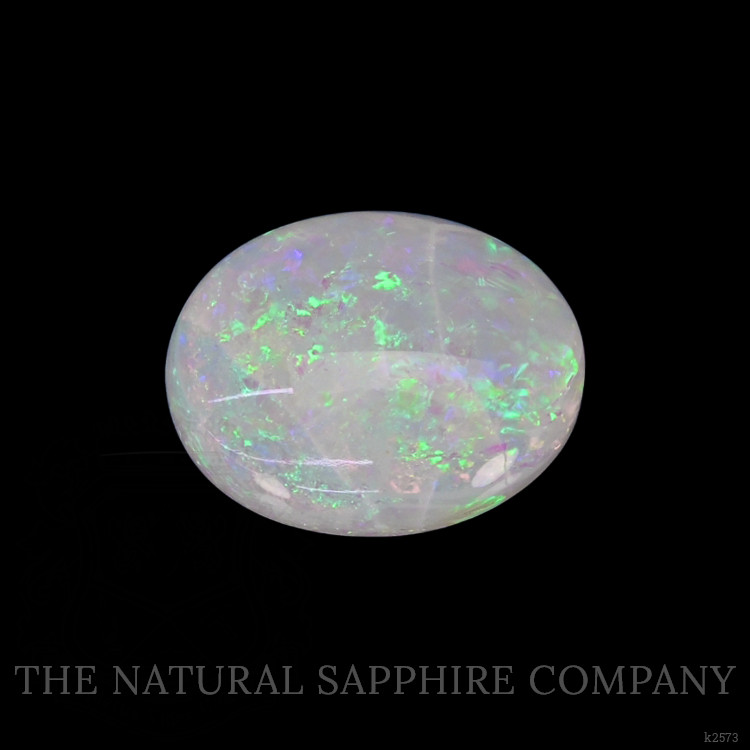 The cabochon cut of this white opal reveals a mesmerizing play of colors, each hue harmoniously shifting and painting a picture as unique as a masterpiece in an exclusive gallery. This opal's slightly included clarity grade speaks to its natural origin, bearing subtle inclusions that add character and prove its authenticity. The medium light color intensity is deftly augmented by its excellent polish, ensuring a radiant, captivating presence that is both refined and enchanting. Sourced from the prestigious opal mines of Australia, this gemstone connects the wearer to a land renowned for its rich opal heritage, further adding to its value and mystique.