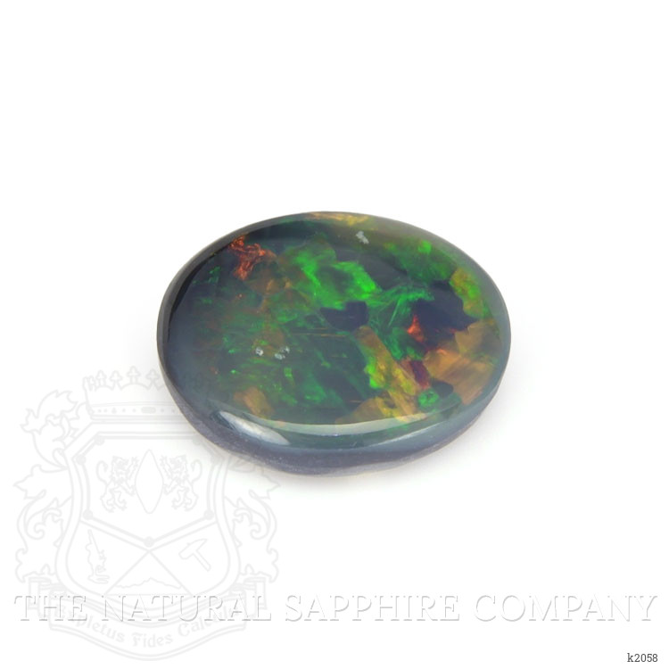 At 3.46 carats, this opal's oval shape and dimensions of 12.97 by 10.58 by 3.61 mm pose a perfect balance between size and elegance. Its tablet cut brings out the inherent beauty of the stone, revealing a delicate arrangement of colors that dance under the light. As a Black Opal, its background deepens the array of hues, from mesmerising blues to fiery reds and opulent greens. This intense color intensity promises not just a jewel, but an ever-evolving painting crafted by nature's hand.