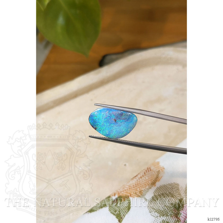 Imagine holding in your hand a piece of the vast Australian outback, a canvas of earth and sky where nature paints with colors only it can master. The Boulder Opal, an exquisite treasure from The Natural Gemstone Company, captures that essence in its vibrant play of colors and its earthy elegance. At 8.28 carats, our opal glows with a mesmerizing moss of blues, greens, and fiery reds, reminiscent of sunrises over ancient landscapes. Its freeform shape enhances its organic beauty, adhering to no boundaries other than those that nature intended.