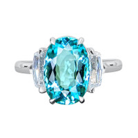 Indulge yourself in the luxurious allure and exceptional craftsmanship of our exquisite Paraiba Tourmaline and Diamond Ring, a piece that epitomizes elegance and sophistication. This ring is not just a piece of jewelry; it is a statement of rarity and exclusivity, designed for those who appreciate the finer things in life. Each element of this magnificent ring has been meticulously selected and crafted to create a breathtaking masterpiece that speaks of opulence and refined taste.At the heart of this captivating creation is a stunning, transparent GIA certified Paraiba Tourmaline, a rare gem that is cherished for its vibrant greenish-blue hue, reminiscent of the serene Caribbean waters. Weighing an impressive 2.88 carats, this oval-shaped tourmaline, with dimensions of 11.23 x 7.59 x 4.51 mm, is cut with a mixed brilliant style that captures and reflects light to create an enchanting dance of colors. Its clarity is graded as eye clean, ensuring that there are no visible inclusions to mar its beauty when viewed at eye level. This exquisite gem exhibits a medium color intensity, striking the perfect balance between grace and vivid expression, further enhanced by its excellent polish. Its origin from Mozambique adds an additional layer of prestige, as this locale is famed for producing some of the world's finest Paraiba Tourmalines.Complementing the center stone are two exquisite white fancy-shaped natural diamonds, artfully set to accentuate the Paraiba Tourmaline. Together, these diamonds weigh a total of 0.59 carats, adding a delicate sparkle that exudes sophistication. With a clarity grade of VS1, these diamonds offer exceptional brilliance while maintaining a pristine appearance, further accentuated by their immaculate F color.This remarkable ensemble is lovingly encased in the finest platinum 950 setting. Renowned for its durability and lustrous sheen, platinum serves as the perfect medium to highlight the rare gemstones while ensuring longevity and comfort in wear. The smoothness of the band is thoughtfully crafted for daily wear, providing a seamless blend of luxury and comfort.Owning this extraordinary Paraiba Tourmaline and Diamond Ring places you within an elite circle, offering you a piece of nature's rarest wonders, magnificently immortalized in platinum. It stands as more than just a ring; it is a timeless treasure, a reflection of one's discernment for true elegance, and a celebration of artistic mastery. Whether adorning your hand for a glamorous evening event or elevating your daily style, this ring is a distinctive piece of art, designed to be cherished and passed down through generations. Don't miss your opportunity to own this uncommon beauty, designed just for you, and become a part of an exclusive legacy of luxury.
