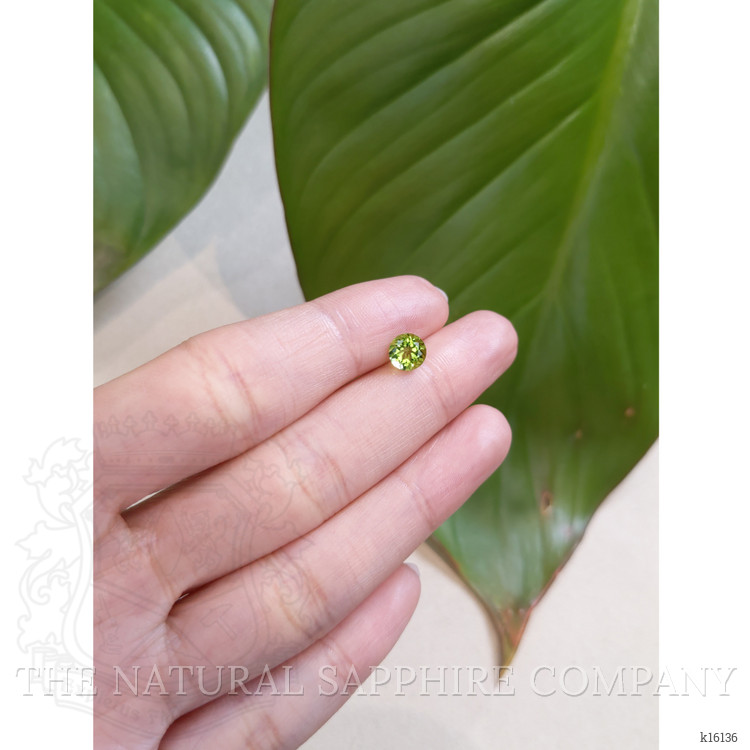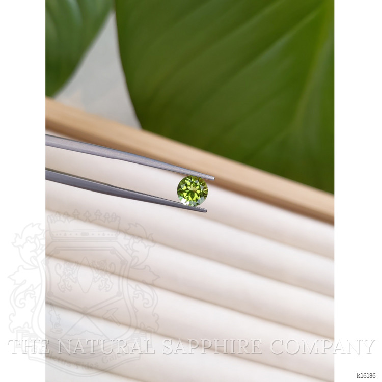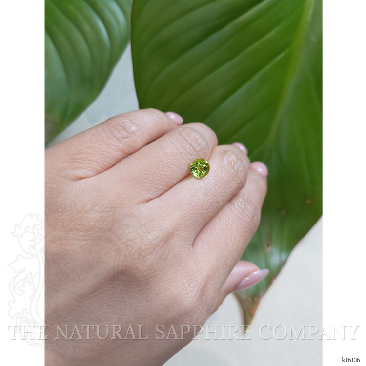 In the tranquil embrace of nature's finest artistry lies our exquisite 1.04 carat round green peridot, a treasure crafted by The Natural Gemstone Company. This jewel captivates the heart with its enchanting dimensions, measuring 6.13 by 6.15 by 4.18 mm, and reveals a pure dance of light through its mixed brilliant cut. The peridot whispers tales of ancient origins from China, offering a gaze of medium intense color intensity, like the first sprout of spring kissed by the gentle morning sun.
