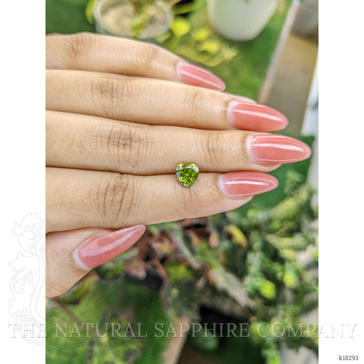 For the educated buyer this peridot presents several compelling attributes. The 1.27 carat weight and near eye clean clarity grade of very very slightly included deliver an attractive balance between size and quality, while the intense color distinguishes it from lighter or overly brown tinged examples. Pakistani peridot is respected in the trade for producing stones with vivid, saturated tones and good transparency, and the absence of enhancement ensures long term stability of color and value. Peridot has a Mohs hardness of approximately 6.5 to 7, which is adequate for daily wear when the gem is set with appropriate protection, and the heart shape benefits from settings that protect the cleft and the pointed terminus, such as secure prongs or a partial bezel. For routine care we recommend gentle cleaning with warm soapy water and a soft brush, avoiding prolonged exposure to extreme heat and harsh chemicals. When selecting this gem for an engagement ring or a special occasion piece the buyer is investing in a natural, untreated material whose internal structure and expert cutting combine to produce a sparkle that is both scientifically interesting and aesthetically memorable, and The Natural Gemstone Company is pleased to offer this peridot with full disclosure of its origin, clarity, and cutting details.