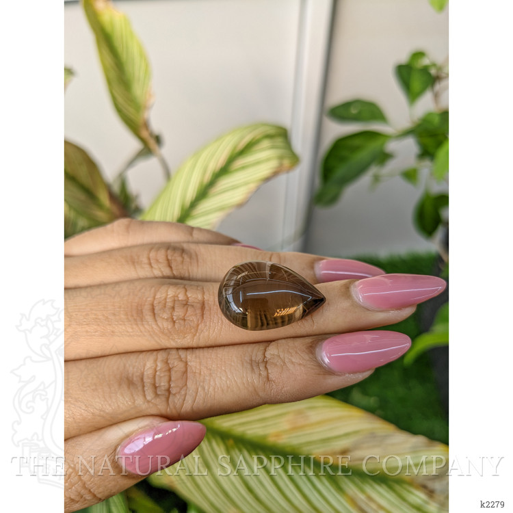 Discover an extraordinary treasure in the world of fine gemstones with our exquisite 22.74 carat pear-shaped brown quartz. This remarkable quartz features a cabochon cut that effortlessly captures the allure and luster of this remarkable gemstone. At The Natural Gemstone Company, we take immense pride in offering pieces that speak of sophistication, luxury, and timeless beauty. This particular quartz, with its medium intense color intensity and excellent polish, is an embodiment of nature’s artistry and a true testament to the unparalleled craftsmanship involved in its creation.