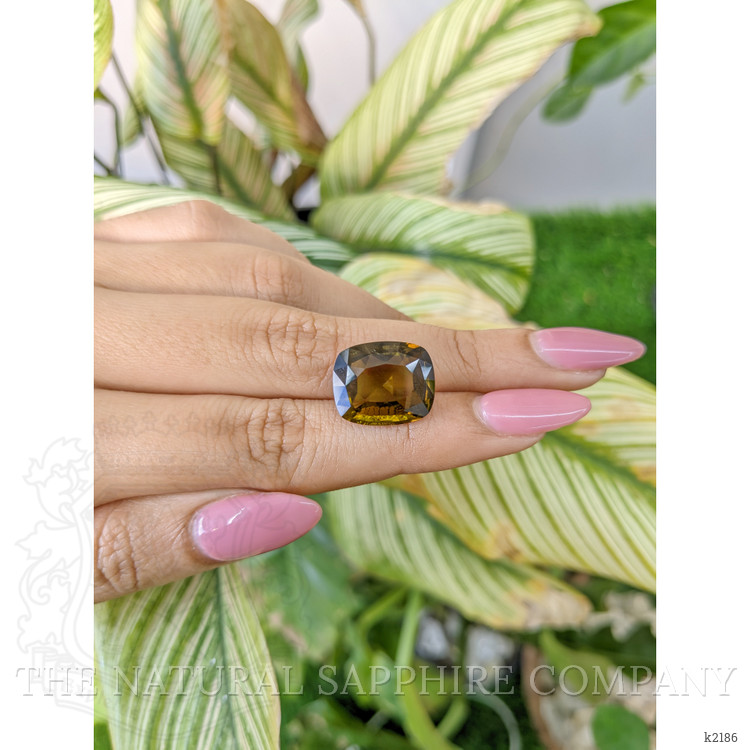 This jewel, with its cushion shape and masterful mixed brilliant cut, refracts light as if capturing all the sunrises and sunsets shared between lovers. Its dimensions, a harmonious blend of form and sparkle, are a testament to nature’s artistry, shaped by gentle hands over eons. Intimately evaluated at eye level, the sinhalite's very slight inclusions are whispers of its journey, stories captured within its core. The intense color intensity radiates passion, and its excellent polish mirrors the hand of an artisan who respects both the gem and the love it symbolizes.