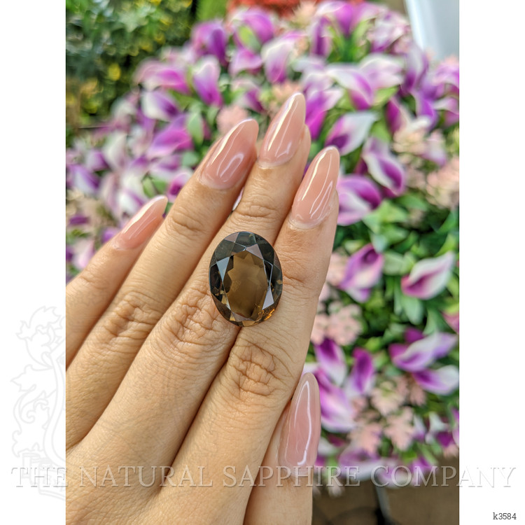 Introducing the centerpiece of magnificence from The Natural Gemstone Company, this exquisite 15.41-carat oval-shaped brown smokey quartz. This gemstone, with its mesmerizing dimensions of 20.07 x 15.18 x 8.93 mm, is a testament to the timeless beauty found in nature's treasures. The brilliant cut of this smokey quartz, combined with its dark color intensity and excellent polish, creates an irresistible allure that captures the heart and elevates any jewelry piece to extraordinary heights. As you hold this magnificent gem in your hand, its warmth and beauty resonate with an earthy sophistication that only a natural stone can provide. The journey of this gem from the rich soils of Brazil to your world imparts a story, one that weaves through epochs of the earth to arrive in your collection as a singular marvel of nature's artistry.