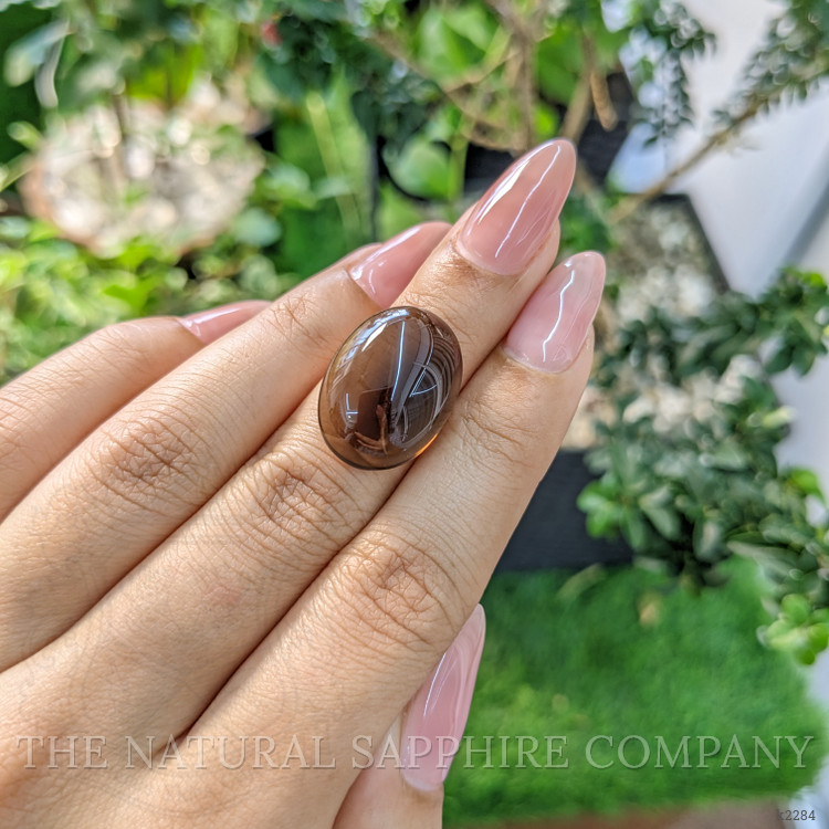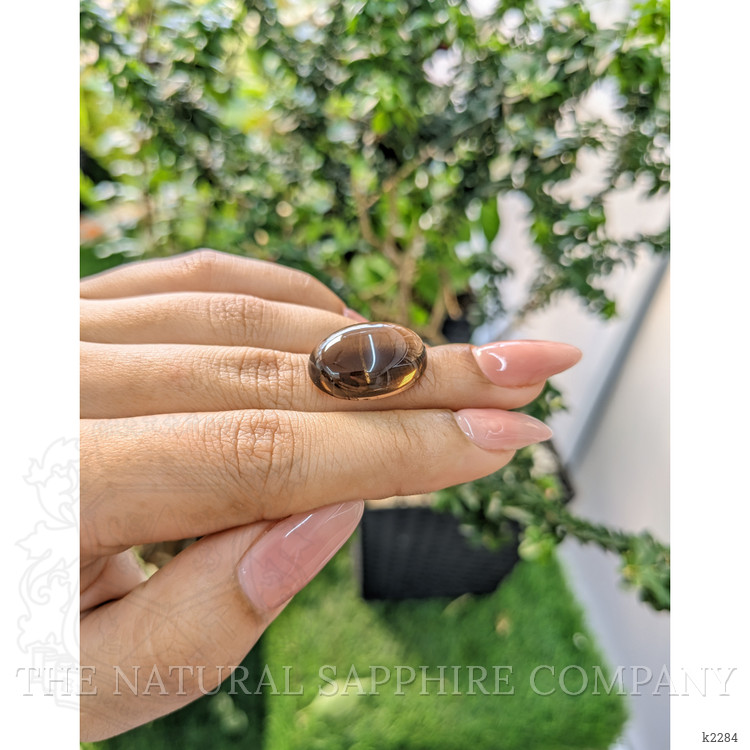 Indulge in the opulence of The Natural Gemstone Company's exquisite smokey quartz, a magnificent treasure marked by an unparalleled beauty that only nature can create. This 16.37-carat oval masterpiece, procured from the rich reserves of Brazil, showcases a semi-translucent allure that is destined to captivate admirers and stile the spotlight in any jewelry setting. Fashioned with the utmost expertise into a cabochon cut, this exquisite stone reveals an intensity of color that resonates with opulent depth and sophistication. Here, the beauty of smoked brown notes unfurls its seduction melding the mystique of an enigmatic horizon with nuances of classic vintage glamor.