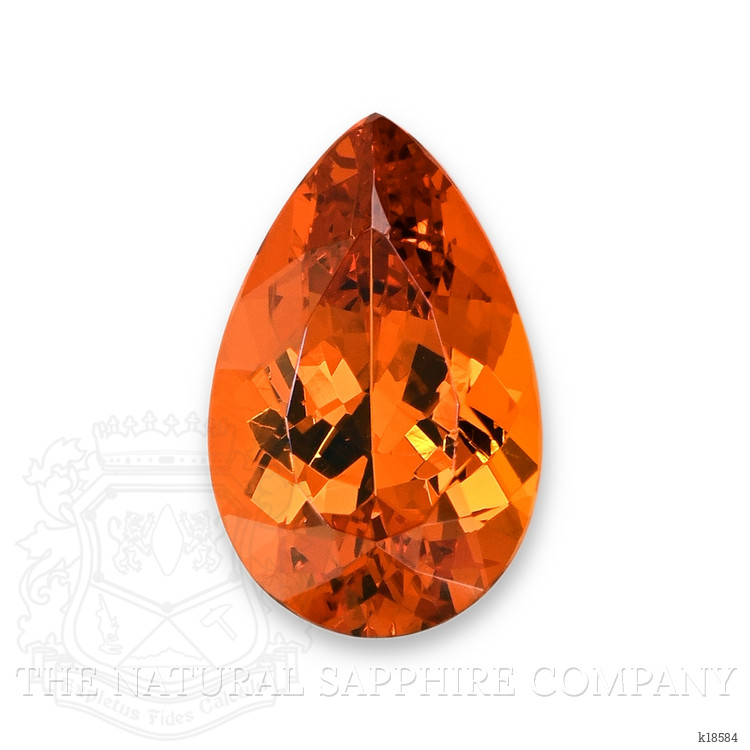 This exquisite 5.12 carat pear shape orange spessartite garnet is an immediate statement of color and presence, rendered in a clean mixed brilliant cut with dimensions of 13.83 x 8.75 x 5.61 mm. The gem is transparent with a vivid color intensity that distinguishes premium spessartites, and it exhibits an excellent polish that enhances light return and surface brilliance. Clarity has been evaluated at eye level as very very slightly included, which for a stone of this saturation and size means that inclusions are minimal and do not interrupt the visual impact when set. There has been no enhancement to alter color or clarity, and the gem is of Nigerian origin, a provenance that is increasingly prized among connoisseurs for producing bold, saturated orange tones. The combination of weight, shape, and cut produces a stone that reads larger than its carat weight in most settings, and its symmetry and facet geometry have been executed to maximize both fire and color saturation.