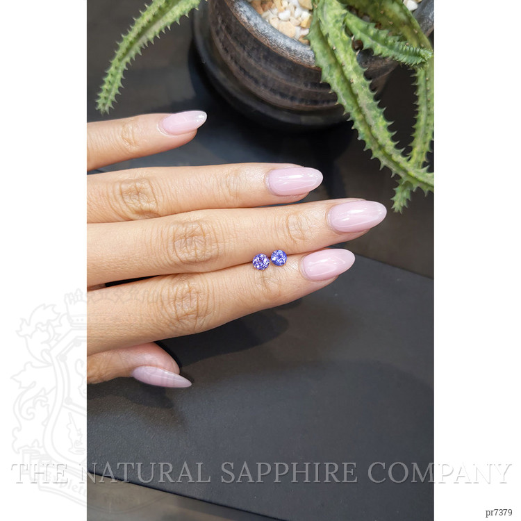 Our magnificent pair of tanzanites, weighing 0.39 carats and 0.44 carats respectively, are truly a testament to beauty and sophistication. These round-shaped violet tanzanites, sourced directly from the renowned gem mines of Tanzania, present dimensions of 4.61 x 4.58 x 3.02 mm and 4.51 x 4.52 x 2.89 mm. Their precision in crafting yields a mixed brilliant cut that sparkles with every movement, capturing light in the most captivating way.