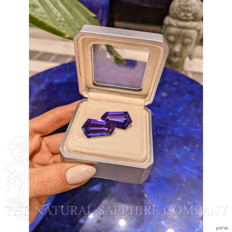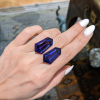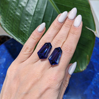In the realm of gemstones, few treasures hold the distinguished elegance and storied past of tanzanites. At The Natural Gemstone Company, we present a magnificent pair of tanzanites that encapsulate the legacy and splendor of this extraordinary gemstone. With roots tracing back to the breathtaking landscapes of Tanzania, these exquisite violet tanzanites offer a brilliant testament to both nature's artistry and human craftsmanship. Each of these fancy shape gems boasts a significant weight of 17.60 carats and 17.00 carats, ensuring their presence is both captivating and undeniable.