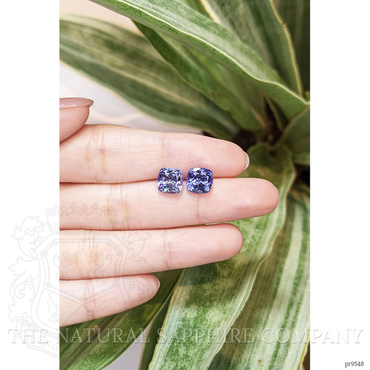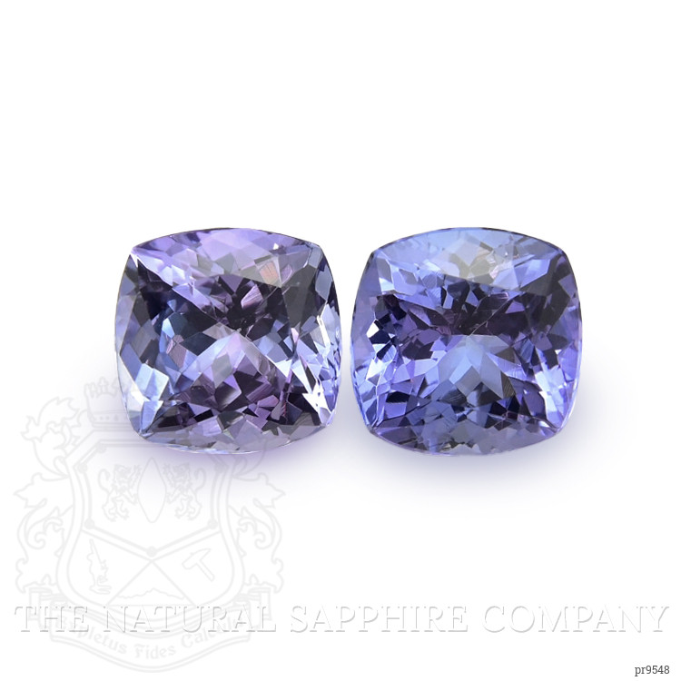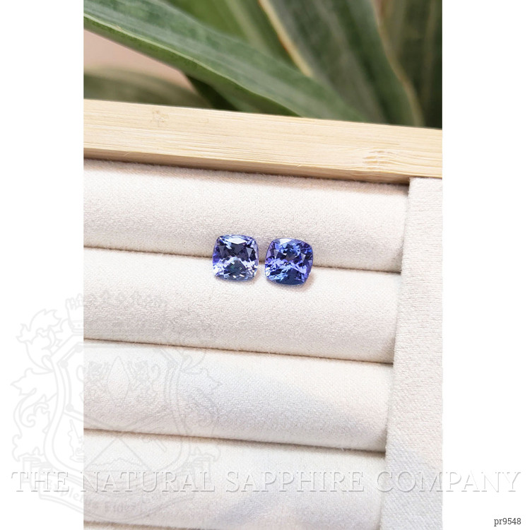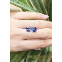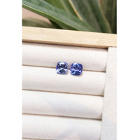Introducing The Natural Gemstone Company's exquisite pair of tanzanites, a true embodiment of elegance and sophistication essential for high-fashion statement earrings. These gems are distinguished by their striking cushion shape and captivating violetish blue hue. At 2.31 carats and 2.40 carats respectively, they offer a balanced allure that promises to elevate any design, capturing attention with their graceful yet bold presence.