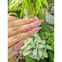 Intricately carved into a checkerboard pattern each facet of the stones serves to invite the light creating a series of flashes that shift with every gesture The craftsmanship in the cutting accentuates the deep color intensity highlighting the uncommon saturated pink hue that draws fascination and admiration Due to their excellent polish and very slight inclusions only discernible through close examination these stones provide a flawless appearance appealing to the most discerning gem connoisseur
