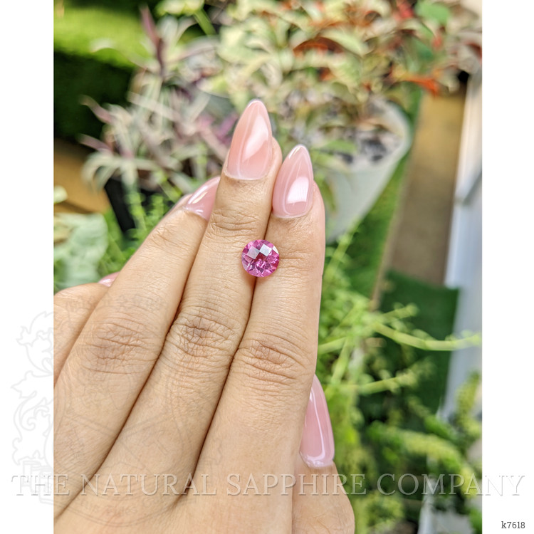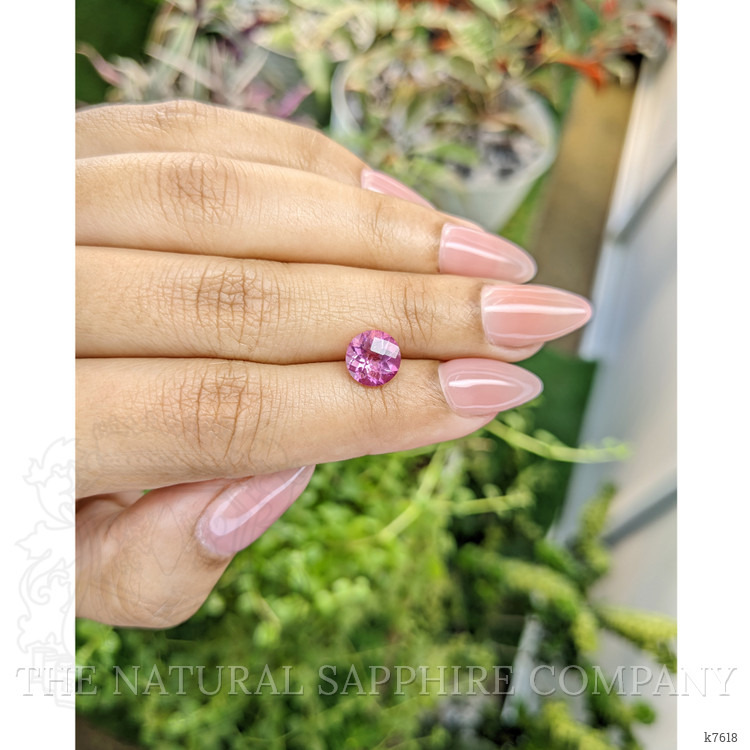 In each contour and facet of this round-shaped wonder, one can discern the harmony of its craft, poised to captivate the most discerning eyes. Measuring a sumptuous 7.93 x 7.94 x 5.51 mm, every dimension has been caressed into perfection. This is a gem that prides itself on the artistry of its checkerboard cut, a meticulous process in itself, executed to unleash an unrivaled dance of light across every angle. Carving brilliance, the expert gem cutters at The Natural Gemstone Company have coaxed from its depths an extraordinary luminosity which allures and enraptures instantly.