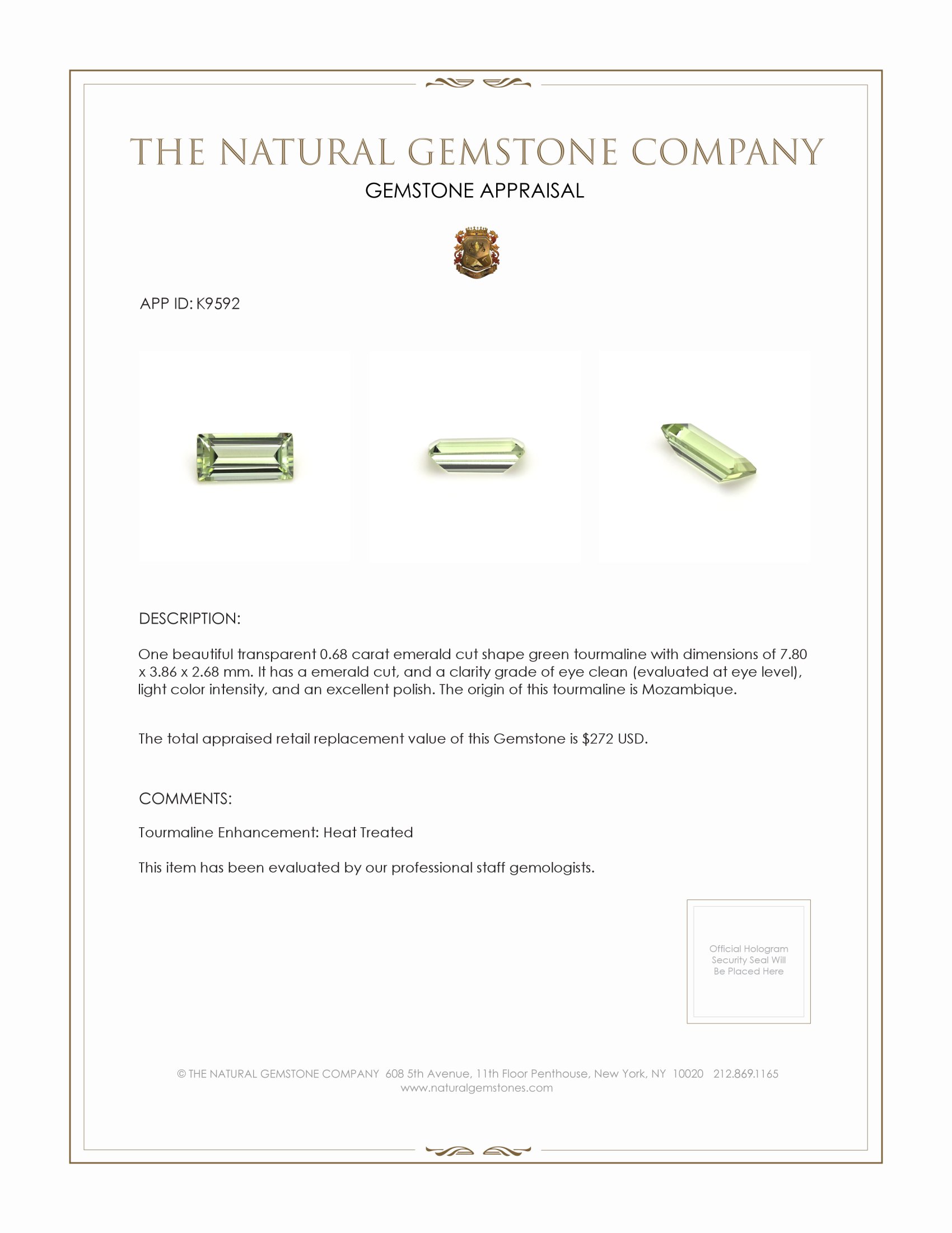 The Natural Gemstone Company prides itself on offering jewels like this that transcend their existence as mere adornments to become vessels of emotional connection and family legacy. With every glimpse, this green tourmaline promises to reignite joy, rekindle love, and celebrate life’s exuberance, adding its silent glow to generations of shared stories. More than a gemstone, it is an heirloom that embodies shared hopes and dreams, a witness to unforgettable memories. As it is handed down from one generation to the next, this gemstone doesn't just carry its physical qualities but carries a piece of the very heart from which it was gifted. Its legacy, like its stunning beauty, is built to last forever.