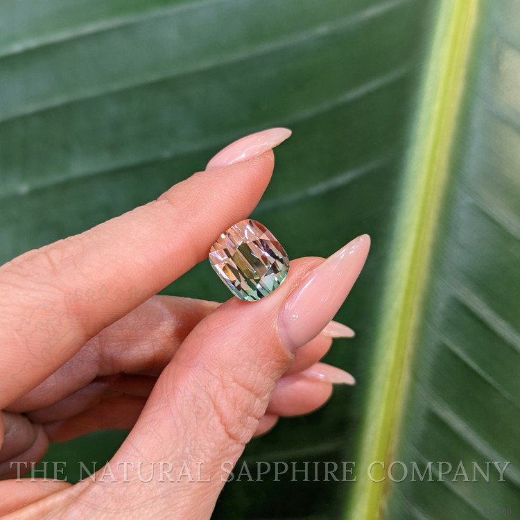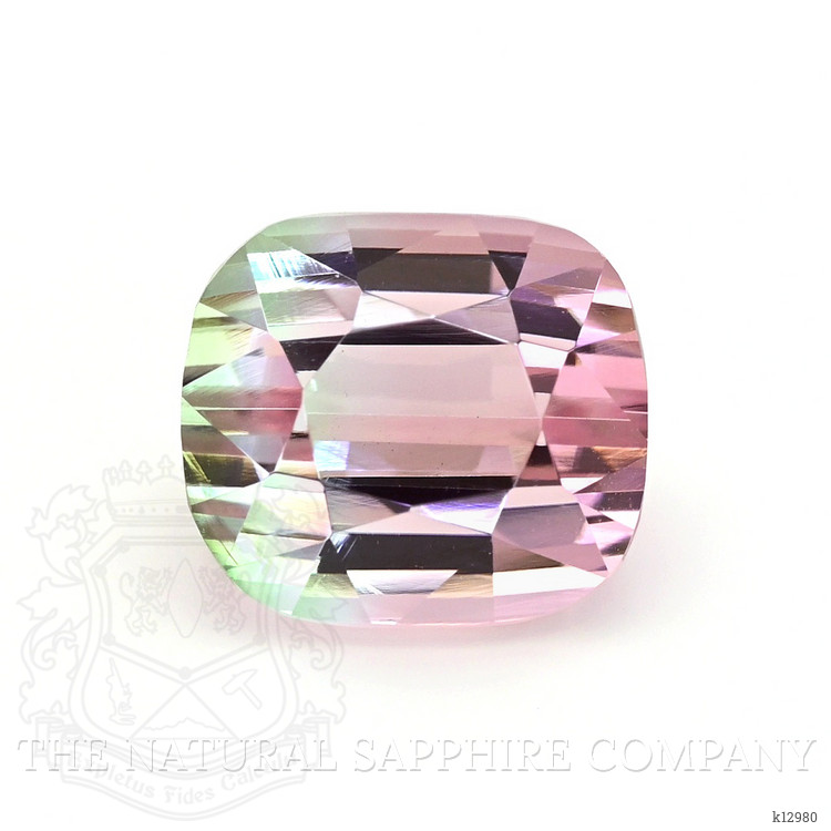 In the quiet whispers of the Earth, where time waltzes with eternity, the mountains of Afghanistan cradle secrets untold. The Natural Gemstone Company unveils a treasure born from these ancient watchful eyes, a magnificent 10.02 carat cushion-shaped bi-color tourmaline that captures the essence of romance spun from threads of time itself. Nestled in its transparent embrace is a harmony of hues, rich and vibrant, blending like the tender exchange of evening and dawn, where day kisses night goodbye. This gem carries within it a tale of elegance and simplicity, a poem written in unparalleled clarity, polished to perfection.