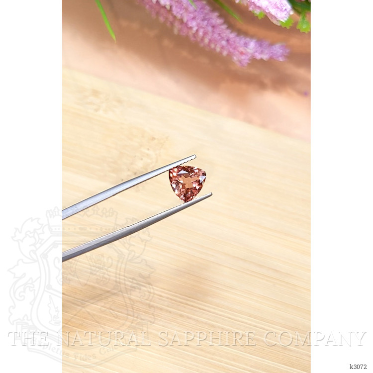 The trillion cut, with its distinctive triangular shape and typically rounded edges, is expertly executed to enhance the natural brilliance and fire of this pink tourmaline. Our highly skilled gem cutters have achieved an excellent polish, allowing every facet to interact with light in a way that accentuates the intense color intensity of this captivating gemstone. Each angle and surface reflects the meticulous attention to detail that is characteristic of The Natural Gemstone Company, making this tourmaline a perfect choice for the discerning buyer who values not only beauty but the story behind it. The choice of a trillion cut highlights the natural clarity of the stone, graded as very slightly included at eye level, ensuring that minor inclusions are scarcely perceptible and do not detract from the gem's overall allure.