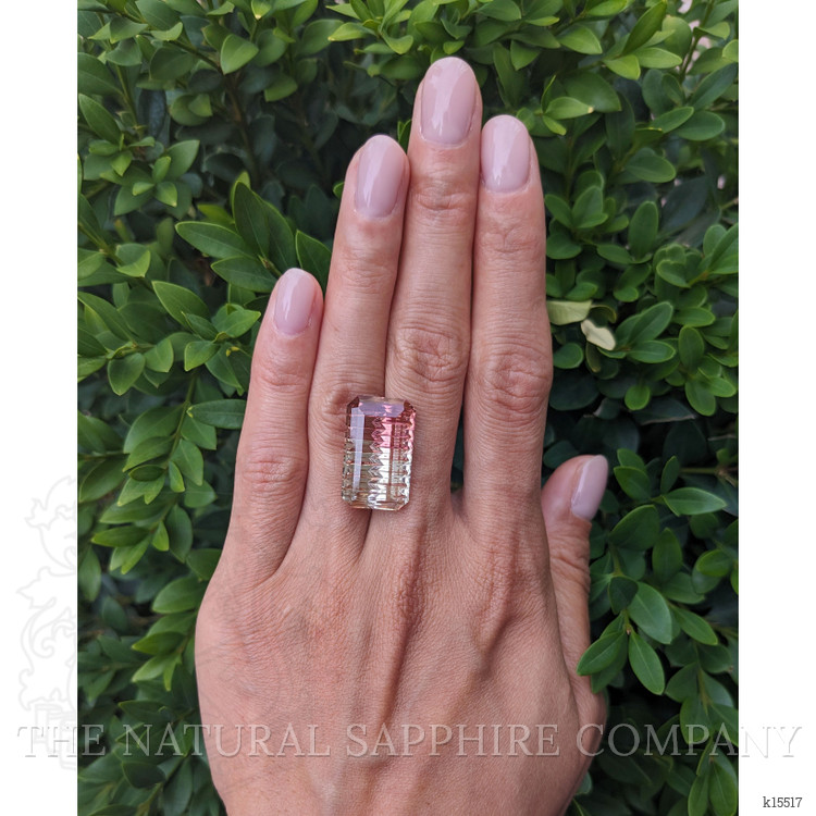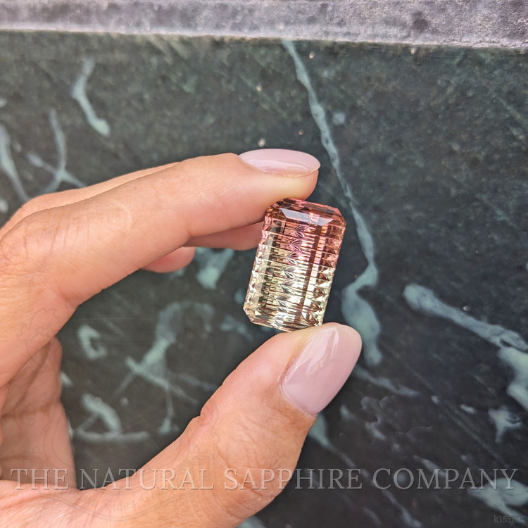 Step into a realm of unparalleled beauty with The Natural Gemstone Company's exquisite transparent 20.03 carat emerald-cut multicolor tourmaline, a gemstone of remarkable splendor and sophistication. Rare and enchanting, this gemstone captures the very essence of luxury, promising to elevate any jewelry creation into an extraordinary expression of elegance. With dimensions poised perfectly at 21.87 x 13.29 x 7.19 mm, this tourmaline embodies an ethereal charm that is both timeless and contemporary. The meticulously executed designer cut unveils its multifaceted brilliance, while the expertly graded eye-clean clarity ensures an unblemished view into its vibrant heart.