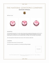 Discover a world where exquisite craftsmanship and the earth's most enchanting creations merge into one sublime vision of luxury at its finest. Presenting the magnificent pink tourmaline, brought to you by The Natural Gemstone Company, an embodiment of nature's artistry and human finesse. This remarkable gemstone, weighing a graceful 3.73 carats, transcends mere ornamentation to become a testament to exceptional taste and sophisticated elegance. Its cushion shape, with dimensions of 8.79 by 8.72 by 6.64 millimeters, allows light to dance across its surface with alluring vitality. The sugar loaf cut highlights its tranquil beauty, creating an enchanting visual symphony that enchants beholders with effortless ease.