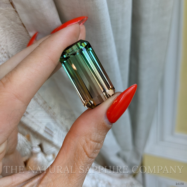 The Natural Gemstone Company is proud to introduce an enchanting addition to our collection, a stunning bi-color tourmaline embodying the richness and depth of nature's artistry. This exquisite 60.77 carat gemstone features an emerald cut shape, measuring 29.26 x 15.73 x 14.03 mm, and originates from the renowned lands of Mozambique. Our bi-color tourmaline stands out with its unparalleled blend of hues, creating a mesmerizing natural spectacle that few gemstones match. The clarity grade of this piece is eye clean, meaning it boasts pristine clarity, free of any visible inclusions when viewed at eye level. This exceptional clarity, combined with intense color intensity and excellent polish, ensures it captivates the eyes and hearts of admirers.