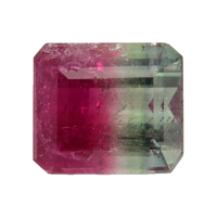 Experience the allure of nature's artistry with this exquisite 7.05 carat bi-color tourmaline. Boasting an elegant emerald cut, this gemstone catches the eye with its unique two-tone coloration—a visual symphony of captivating hues that seamlessly blend from one shade to another within a single crystal. At dimensions of 11.15 x 9.70 x 7.26 mm, it's perfectly sized to make a statement without overpowering.